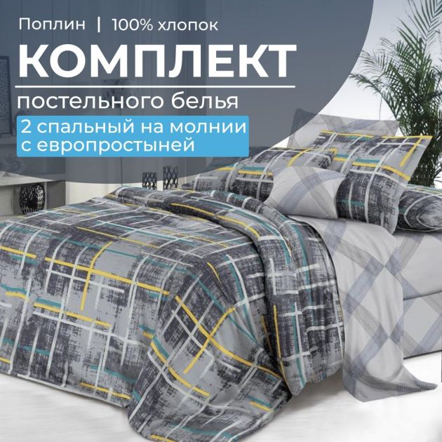 Комплект постельного белья 2-спальный с Евро простыней,на молнии, поплин (Руслан)