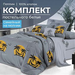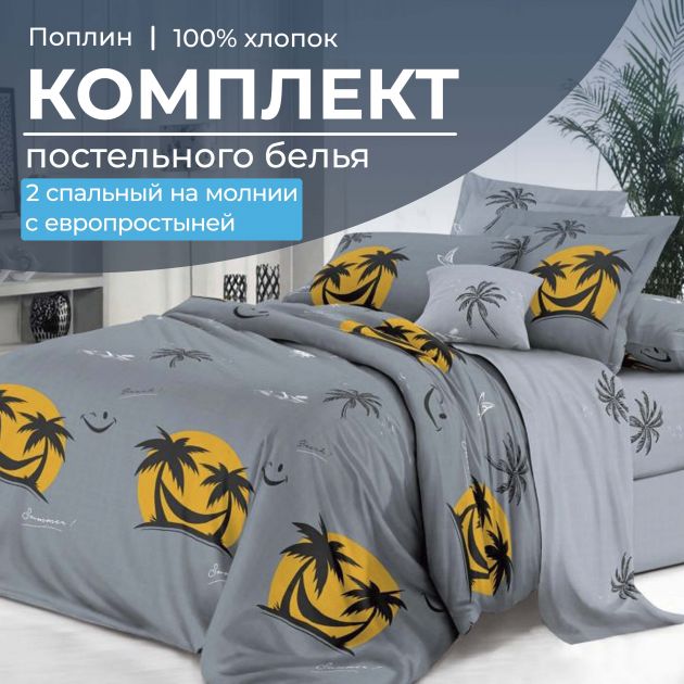 Комплект постельного белья 2-спальный с Евро простыней,на молнии, поплин (Тенерифе)
