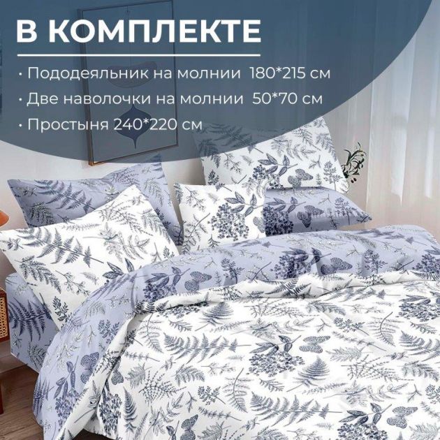 Комплектность: 1 пододеяльник, 1 простыня, 2 наволочки