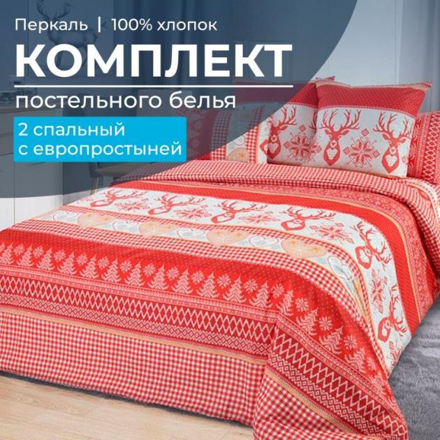 Комплект постельного белья 2-спальный с Евро простыней, перкаль (Лапландия, красный)