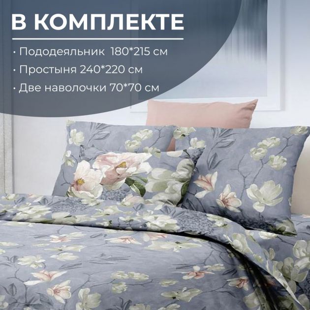 Комплектность: 1 пододеяльник, 1 простыня, 2 наволочки