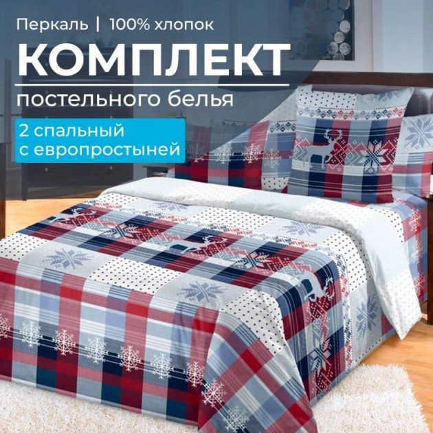 Комплект постельного белья 2-спальный с Евро простыней, перкаль (Норвегия)