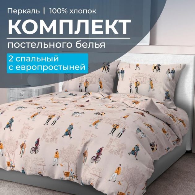 Комплект постельного белья 2-спальный с Евро простыней, перкаль (Осенний город)