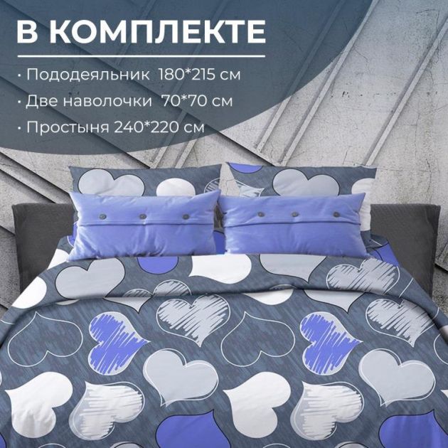 Комплект постельного белья 2-спальный с Евро простыней, поплин (Романтика, синий)