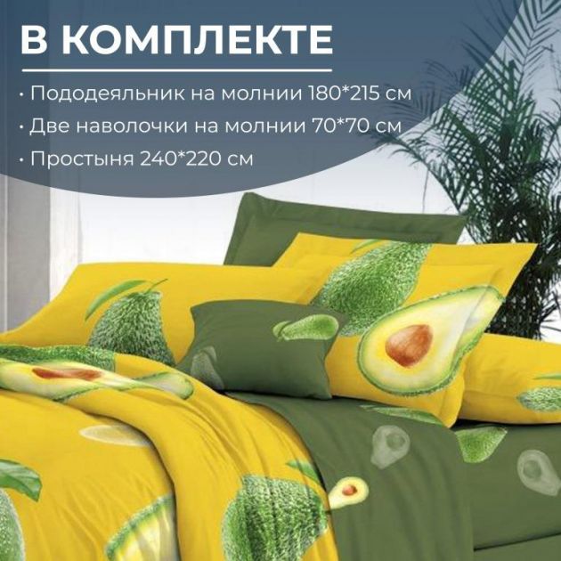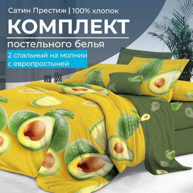 Комплект постельного белья 2-спальный, сатин "Престиж", с Европростыней (Авокадо)