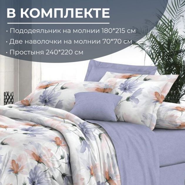 Комплектность: 1 пододеяльник, 1 простыня, 2 наволочки