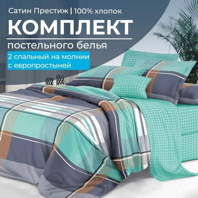 Комплект постельного белья 2-спальный, сатин "Престиж", с Европростыней (Эдгар)