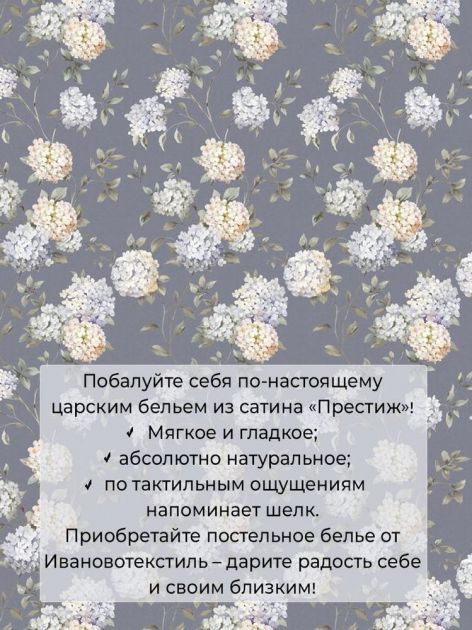 Комплект постельного белья 2-спальный, сатин "Престиж", с Европростыней (Гортензии)