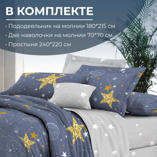 пододеяльник 1 шт., простыня 1 шт., наволочка 2 шт.