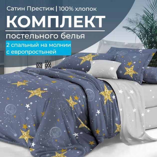 Комплект постельного белья 2-спальный, сатин "Престиж", с Европростыней (Космос)