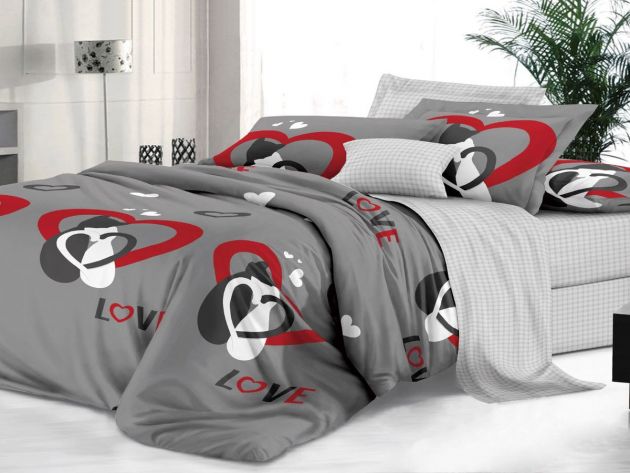 Комплект постельного белья 2-спальный, сатин "Престиж", с Европростыней (Милая пара)