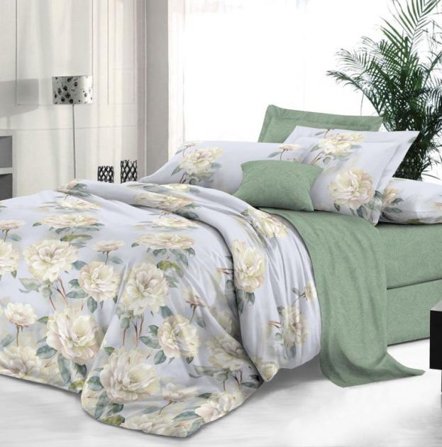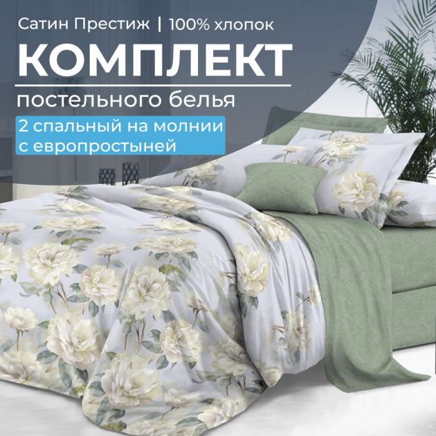 Комплект постельного белья 2-спальный, сатин "Престиж", с Европростыней (Нежный цветок)