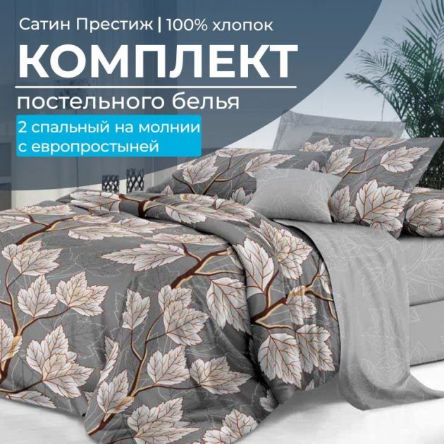 Комплект постельного белья 2-спальный, сатин "Престиж", с Европростыней (Шепот ночи)