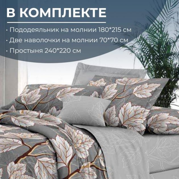 Комплектность: пододеяльник 1 шт., простыня 1 шт., наволочка 2 шт.