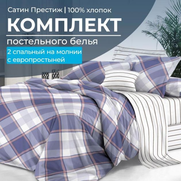 Комплект постельного белья 2-спальный, сатин "Престиж", с Европростыней (Уверенность)
