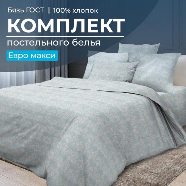 Комплект постельного белья Евромакси, бязь ГОСТ (Бельведер грифин)