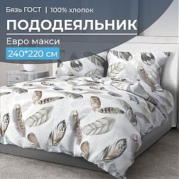 В комплекте: пододеяльник Евромакси размером 240*220 см (вход в пододеяльник выполнен в нижнем шве – прорезь длиной 70 см), простыня размером 240*220 см, две наволочки размером 70*70 см с клапаном не менее 25 см.
