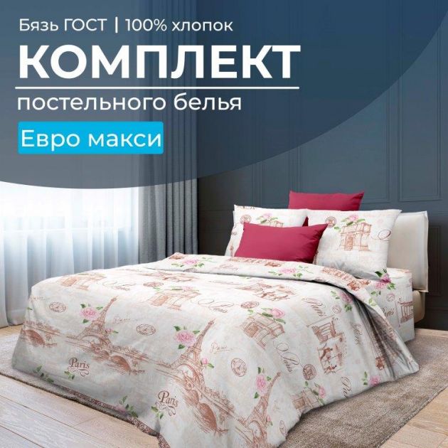 Комплект постельного белья Евромакси, бязь ГОСТ (Парижанка)