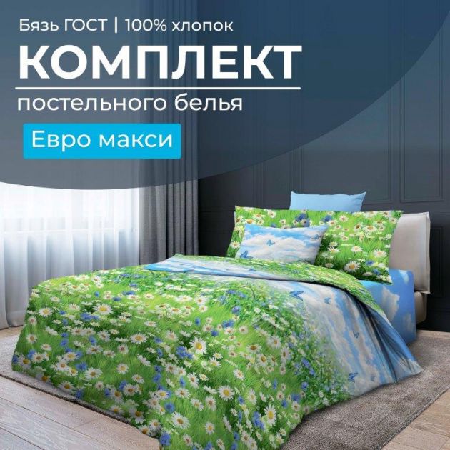 Комплект постельного белья Евромакси, бязь ГОСТ (Русское поле 3 D)