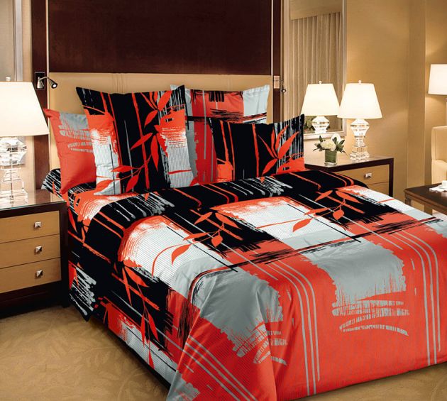 Комплект постельного белья Евромакси, бязь "Люкс" (Хокку, красный)