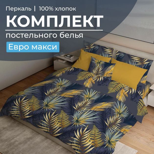 Комплект постельного белья Евромакси, перкаль (Мира, синий)