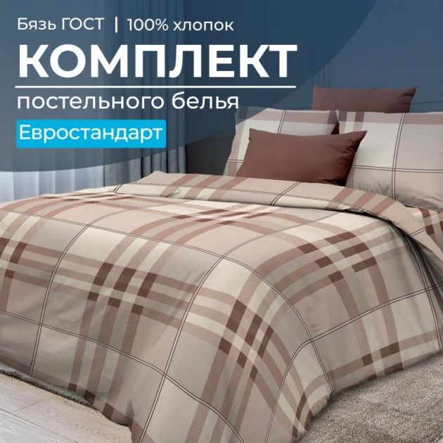 Комплект постельного белья Евростандарт, бязь ГОСТ (Лионель, бежевый, вид 1)
