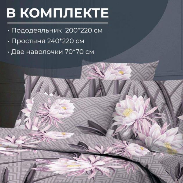 Комплектность: пододеяльник 1 шт., простыня 1 шт., наволочка 2 шт.