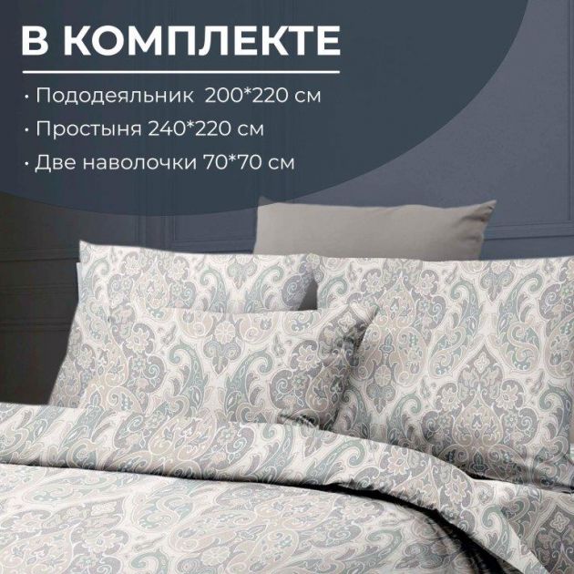 Комплектность: пододеяльник 1 шт., простыня 1 шт., наволочка 2 шт.