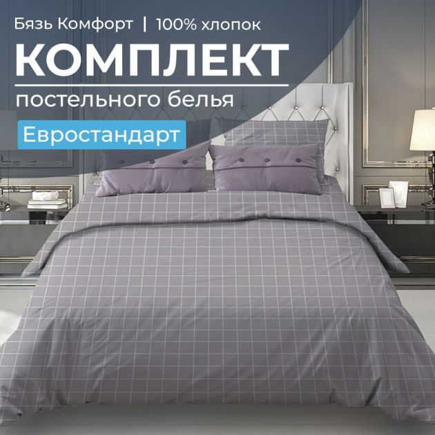 Комплект постельного белья Евростандарт, бязь "Комфорт" (Таттерсол, серо-бежевый)