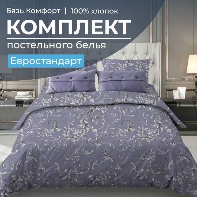 Комплект постельного белья Евростандарт, бязь "Комфорт" (Валенсия, сиреневый)