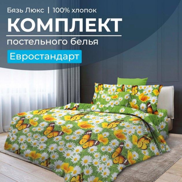 Комплект постельного белья Евростандарт, бязь "Люкс" (Ромашковая поляна)