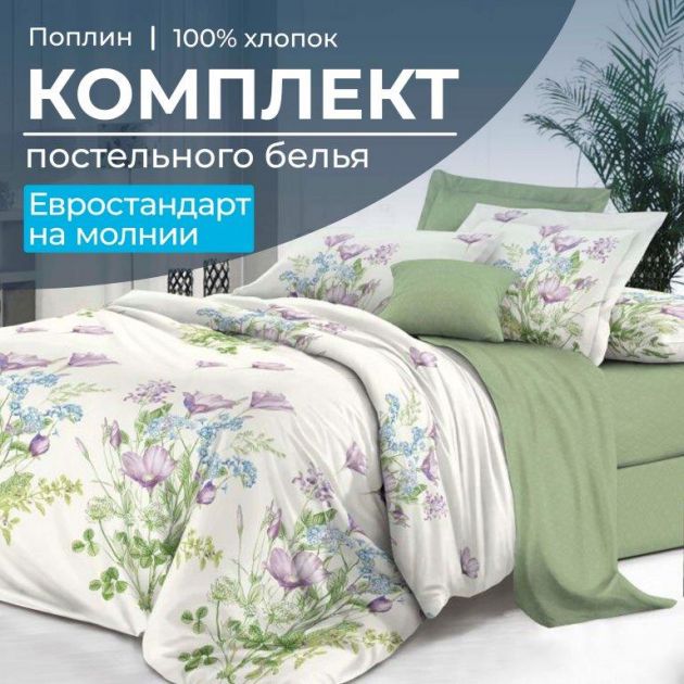 Комплект постельного белья Евростандарт, на молнии, поплин (Фрейя)