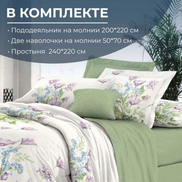 Комплектность: 1 пододеяльник, 1 простыня, 2 наволочки