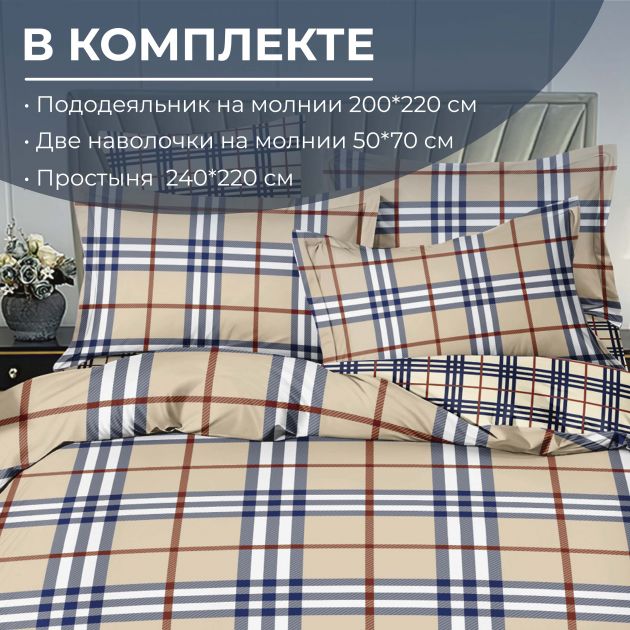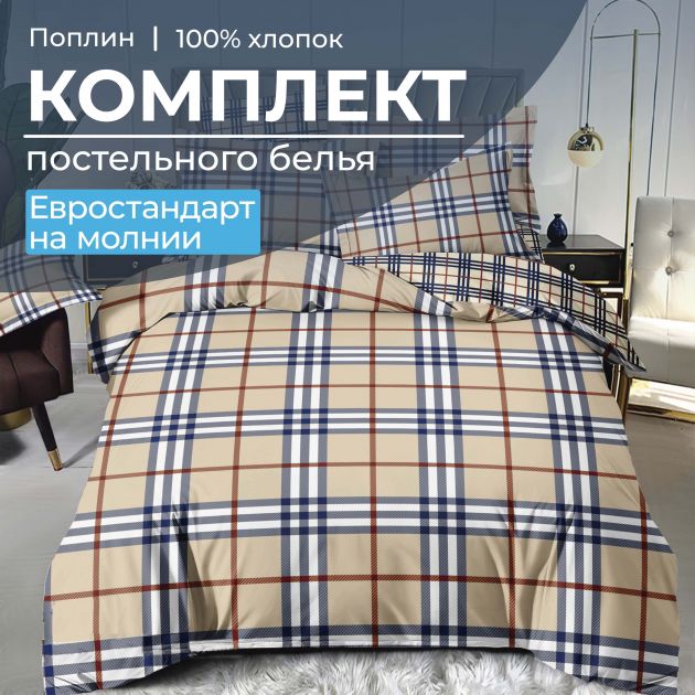 Комплект постельного белья Евростандарт, на молнии, поплин (Клео)