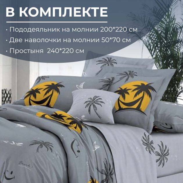 Комплект постельного белья Евростандарт, на молнии, поплин (Тенерифе)