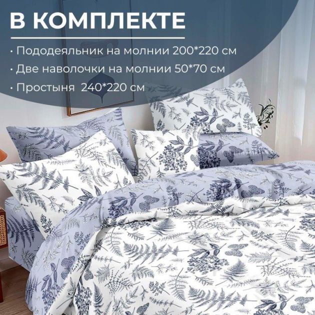 Комплектность: 1 пододеяльник, 1 простыня, 2 наволочки