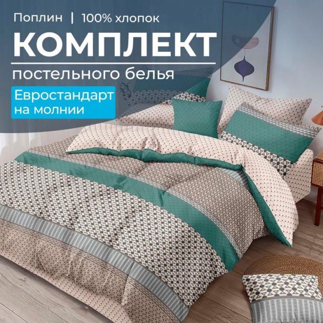Комплект постельного белья Евростандарт, на молнии, поплин (Визави)