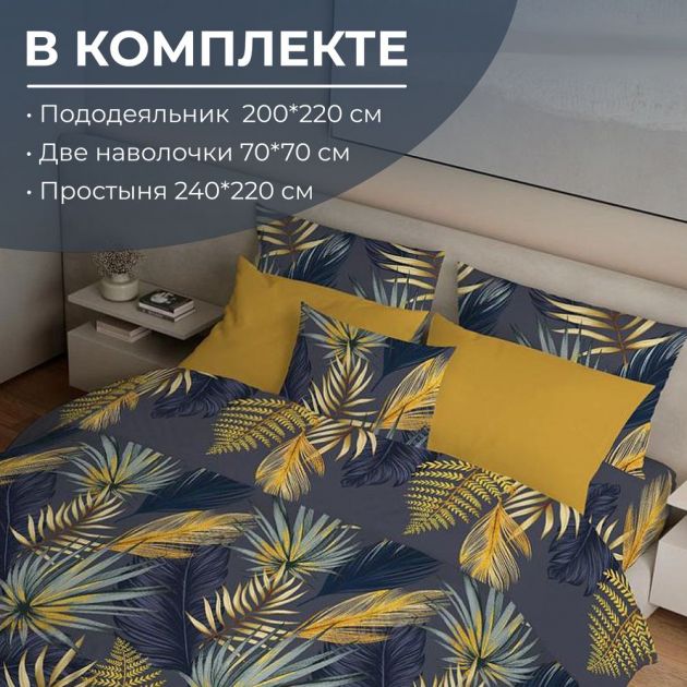 Комплектность: 1 пододеяльник, 1 простыня, 2 наволочки