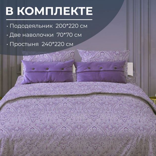 Комплект постельного белья Евростандарт, поплин (Дамаск, фиолетовый)