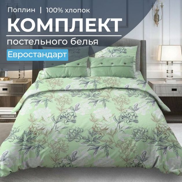 Комплект постельного белья Евростандарт, поплин (Симфония, зеленый)