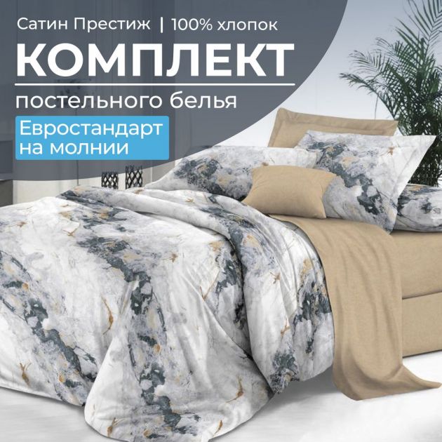 Комплект постельного белья Евростандарт, сатин "Престиж" (Ценность)