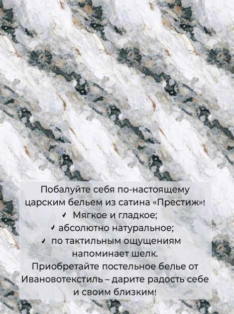 Наше постельное белье Евростандарт из сатина "Престиж" плотностью ткани 115 г/м2 создано для комфортного и приятного сна. В комплекте: пододеяльник 200 * 220 см, оснащенный удобной потайной застежкой на молнии, простыня 240 * 220 см, наволочки 70 * 70 см на молнии - 2 штуки, 50 * 70 см на молнии - 2 штуки. Сатин "Престиж" - это ткань из 100% хлопка, с благородным блеском, который придает изделиям определенный шик, а нежная и гладкая поверхность не оставит никого равнодушным. Постельное белье из сатина служит долго, так как ткань почти не изнашивается (не вытягивается, не деформируется), оно гипоаллергенное, мало сминаемое, дышащее, приятное по тактильным ощущениям, поэтому отдыхать на постельном белье из сатина весьма приятно. Порадуйте себя и своих близких нашим комплектом постельного белья из сатина «Престиж», ведь это идеальный подарок на любой праздник. Размерность комплекта