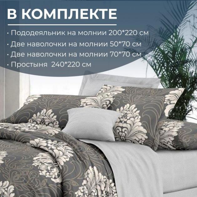 Комплектность: пододеяльник 1 шт., простыня 1 шт., наволочка 4 шт.