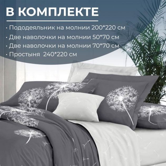 Комплектность: пододеяльник 1 шт., простыня 1 шт., наволочка 4 шт.