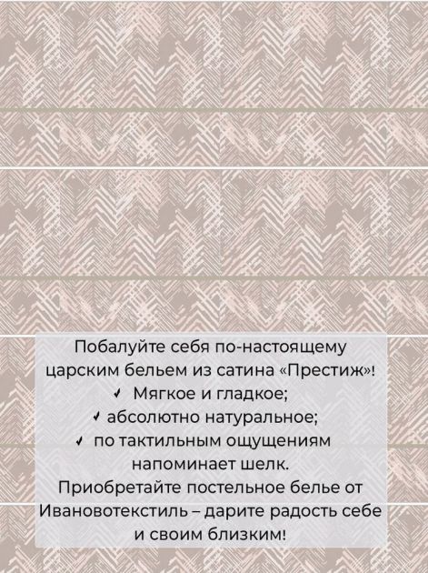 Наше постельное белье Евростандарт из сатина "Престиж" плотностью ткани 115 г/м2 создано для комфортного и приятного сна. В комплекте: пододеяльник 200 * 220 см, оснащенный удобной потайной застежкой на молнии, простыня 240 * 220 см, наволочки 70 * 70 см на молнии - 2 штуки, 50 * 70 см на молнии - 2 штуки. Сатин "Престиж" - это ткань из 100% хлопка, с благородным блеском, который придает изделиям определенный шик, а нежная и гладкая поверхность не оставит никого равнодушным. Постельное белье из сатина служит долго, так как ткань почти не изнашивается (не вытягивается, не деформируется), оно гипоаллергенное, мало сминаемое, дышащее, приятное по тактильным ощущениям, поэтому отдыхать на постельном белье из сатина весьма приятно. Порадуйте себя и своих близких нашим комплектом постельного белья из сатина «Престиж», ведь это идеальный подарок на любой праздник. Размерность комплекта