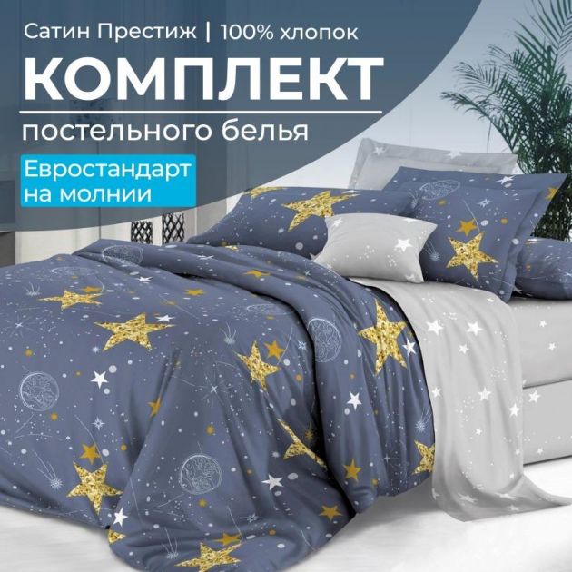 Комплект постельного белья Евростандарт, сатин "Престиж" (Космос)