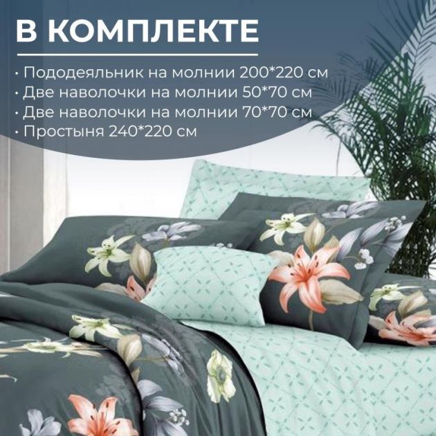 Комплектность: пододеяльник 1 шт., простыня 1 шт., наволочка 4 шт.