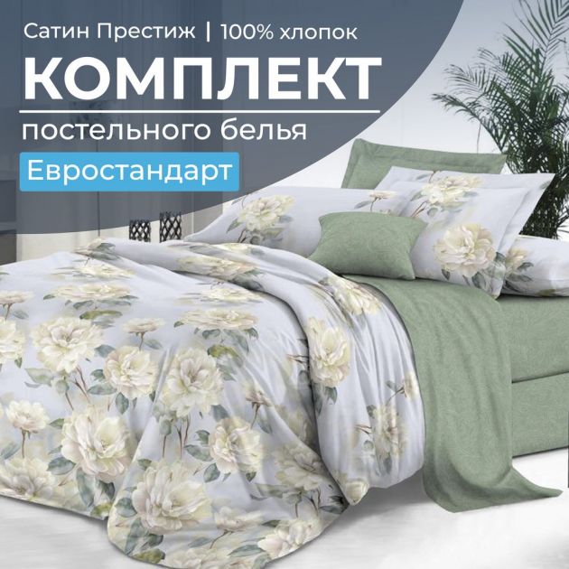 Комплект постельного белья Евростандарт, сатин "Престиж" (Нежный цветок)