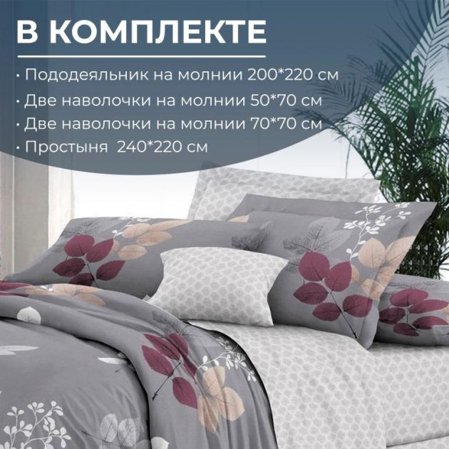 Комплектность: пододеяльник 1 шт., простыня 1 шт., наволочка 4 шт.