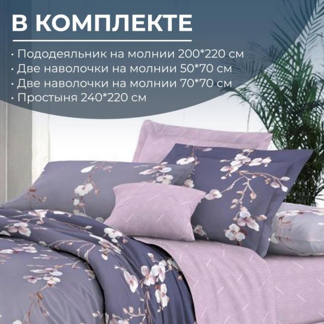 Комплектность: 1 пододеяльник, 1 простыня, 4 наволочки